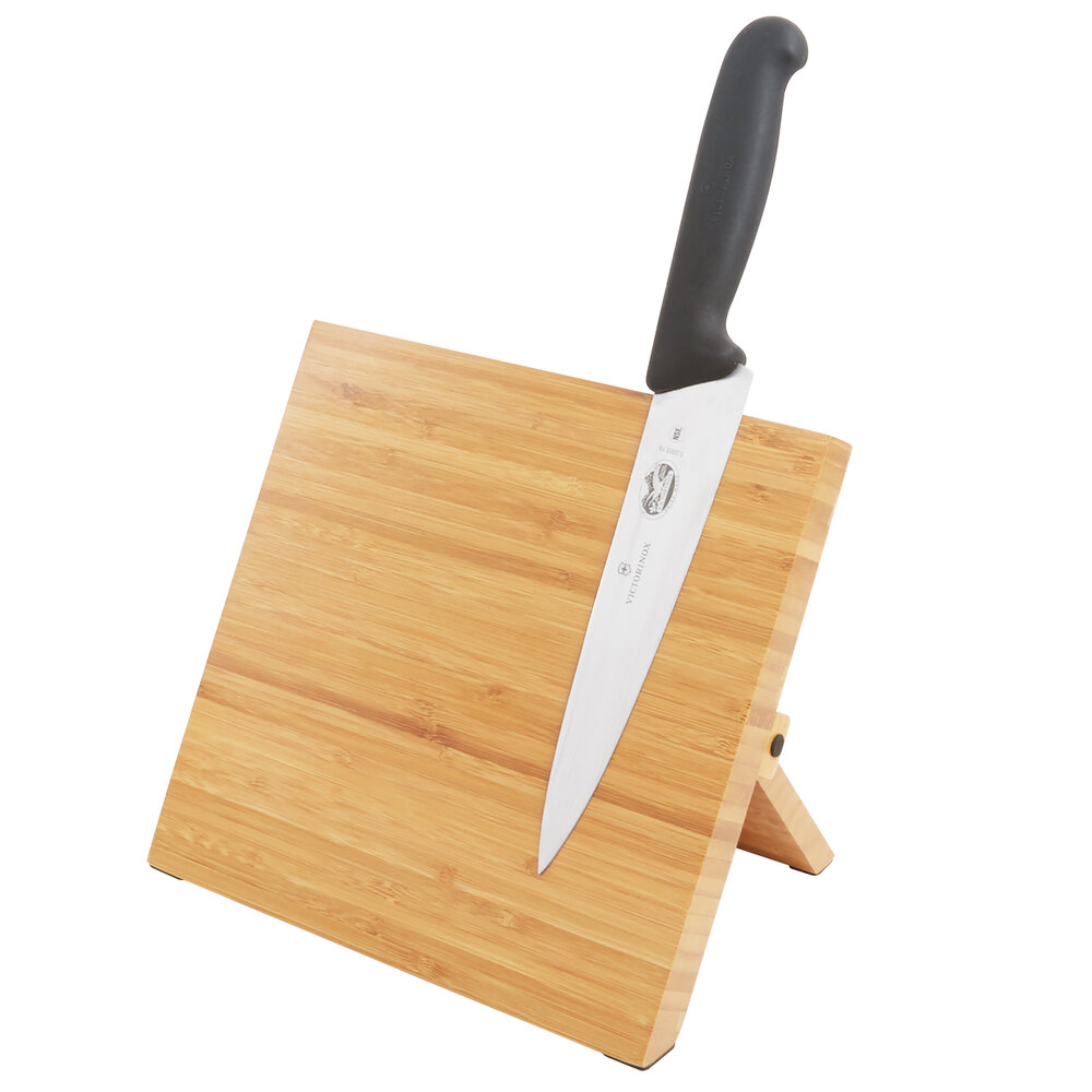 I received this and think it is a nice display for my mercer items. The knives stick right to the board and do not budge. It looks great and has a function as storage which is a plus.