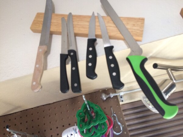Magnetic rubberwood knife holder is awesome it works great for hauling your knives you have a nice sanitary manner instead of sticking it in a sleeve on the wall and it dries