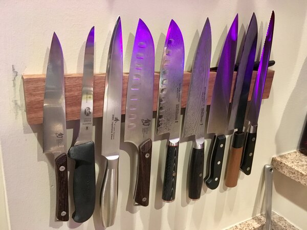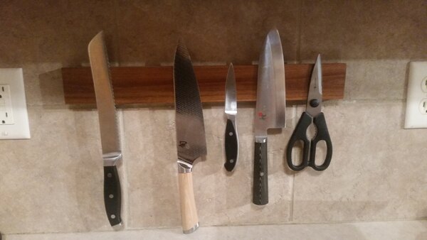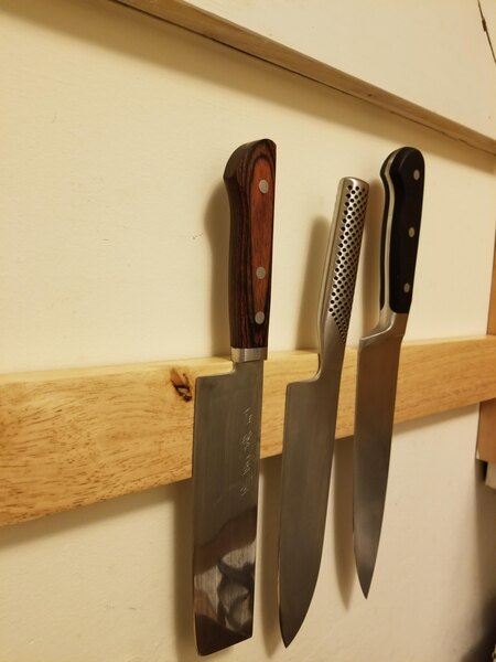 looks great but very weak magnet. I had it installed in my office to display my Japanese knives (it could only handle 3 knives) since they are so light. It will not work for my heavier German and Swiss made knives. I would not buy it again.