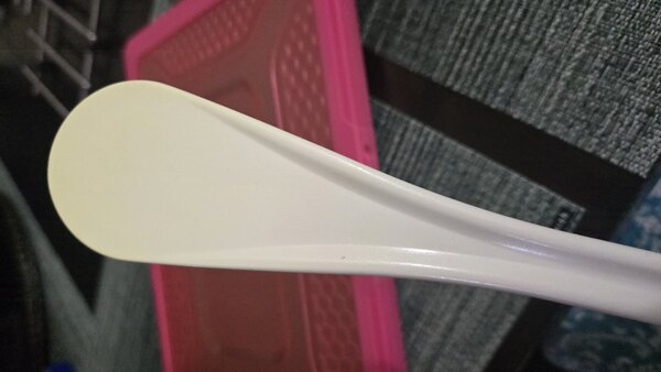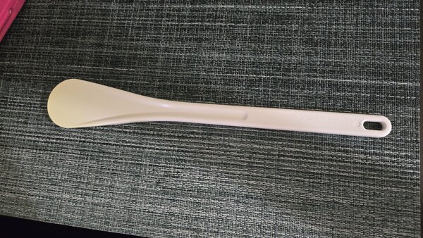 I really like and appreciate this unusual utensil. So full marks for the design, but I take off a star because the only option white color stains very quickly (one batch of chili will do it) which is not so aesthetically appealing. This would be perfect if it were offered in darker color options for those of us who like our utensils in crocks on the counter.