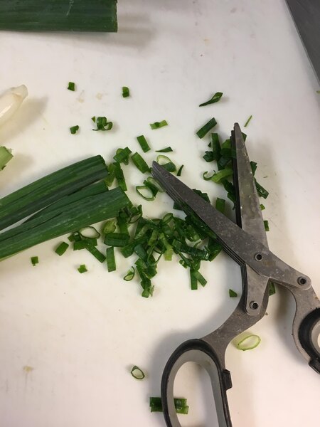 These scissors were a fun gadget. It helped with cutting chives and garlic scapes but I eventually went back to the knife as it took me about the same time to chop them.