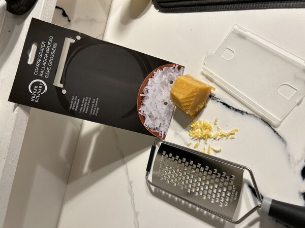 Needed a quality coarse grater and the MercerGates grater pulled through! This grater is very efficient and allowed me to grate cheese so fast and beautifully!