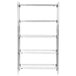 The five shelves feature a unique corner release system that allows them to be adjusted quickly and easily without the use of tools, while an open-wire construction minimizes dust accumulation to permit free air circulation and greater visibility. The 18" x 42" Super Adjustable 2 chrome shelves each have an 800 lb. capacity to hold your heaviest prep tools or bulk ingredients, and the entire shelving unit has a 2000 lb. maximum capacity.
