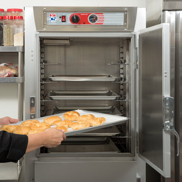 Holding hot food ready for service is an important task and must be accomplished at safe, proper temperatures. Luckily, that task is made simple with this full-size holding cabinet! Fully insulated and outfitted with solid, dutch doors, the unit boasts a high performance heating system and energy efficient heat retention. Your catering business, banquet hall, or hotel will enjoy the easy convenience this cabinet provides!