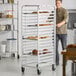 Keep your freshest restaurant or bakery specialties neatly stored and easily transported in the Metro RT183N end load pan rack. Capable of holding 18 pans or up to 300 lb., this sturdy bun pan rack is made of high-strength extruded aluminum. 5" swivel casters enable easy transportation and maneuverability, while an end load frame design allows pans to be loaded and unloaded from the front or rear while saving valuable floor space. The slide assemblies can be easily removed for quick sanitizing and cleaning.