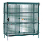 Metro SEC56K3-SL-2EZ Super Erecta 28 1/2" x 62 1/2" x 66 13/16" Metroseal Green Epoxy Stationary Security Unit with SlideSecure Sliding Doors and 2 EZ-ADD Shelves