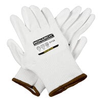 Protect your hands with this Monarch black engineered fiber cut resistant pair of gloves with black latex palm coating. The 10 gauge fabric offers a high level of cut resistance with EN388 CE protection of 4543 and ANSI level A4 cut protection, meaning that more than 1500 grams of weight is required to cut through the material. This ensures worry-free tasks for your employees as they can be sure the gloves will remain durable, comfortable, and fully capable of guarding against accidental cuts, even in high volume, fast-paced settings. Perfect for warehouses, construction sites, and handy-man jobs alike, this pair of gloves is sure to boost both safety and productivity.