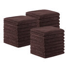 This burgundy-colored towel is made from microfiber, a middle-ground between 100% cotton towels and coral fleece towels. It dries quicker and is more absorbent than 100% cotton towels. It is capable of soaking up 7x its weight in water. Each pack comes with 24 towels to add to your collection. With its great durability and absorption, this premium microfiber towel will be a welcomed addition to your client's experience while maintaining a clean and professional image in your establishment!