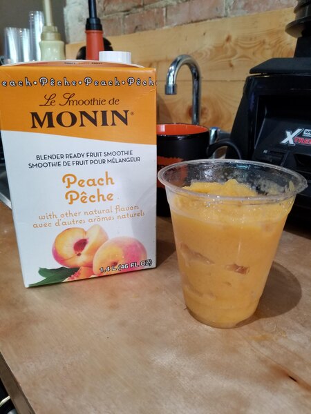Every time I open the Monin peach smoothie mix, I am instantly hit with the aroma of fresh peaches. My customers love this smoothie mix.