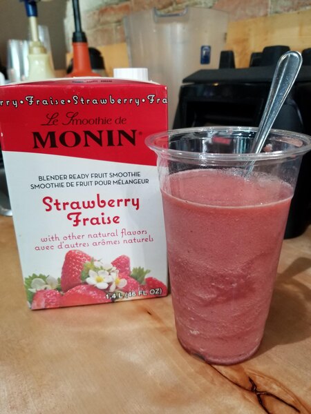 First time buying this strawberry fruit smoothie mix made by Monin and I will definitely be buying more very soon. It has such a natural strawberry flavoring/