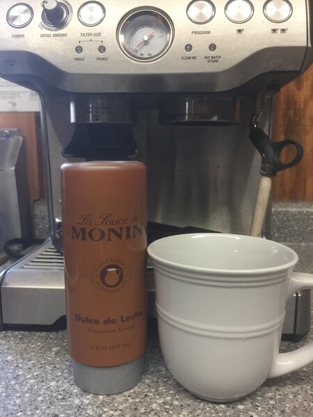 We love the monin sauces. I use them, mixed with espresso, as the base for our flavored lattes. It’s much better using the sauce rather than the syrup, if you are able to. The dulce de leche is a great flavor!