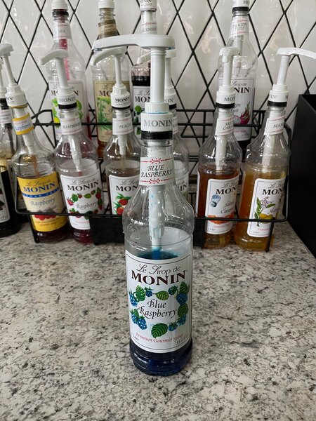 Featuring the sweet, succulent flavor of candied raspberry, this syrup provides a quick and easy way to add exciting new flavor and a bold blue color to a variety of your handcrafted sodas, slushies, lemonades, and cocktails. Made with pure cane sugar, this syrup will enhance the flavor profile of your mixed or blended drinks without overpowering them or being too sweet. You can even use this syrup to create deliciously sweet popsicles, sorbets, or snow cones! Packaged in a shatterproof plastic bottle, this flavoring syrup is an excellent addition to any restaurant, bar, coffee shop, or cafe. It boasts a sleek appearance for an attractive shelf presence and can easily be paired with a compatible pump for quick, efficient service during peak serving hours.