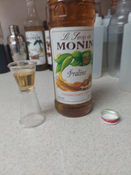 0.75 oz. Monin praline syrup