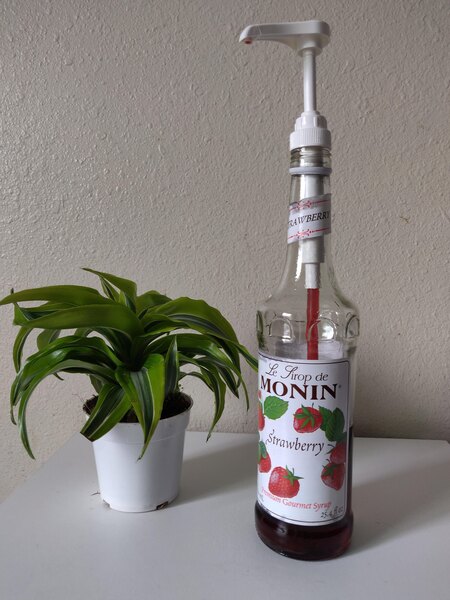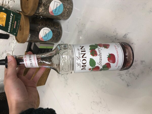 "Strawberry Monin flavoring is a perfect addition to a black iced tea. The flavor is pure and true with just the perfect sweetness. Makes a great lemonade mixer."