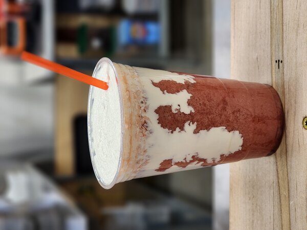 This smoothie mix is very sweet, but was fixed by blending with milk. We top ours with cold foam.