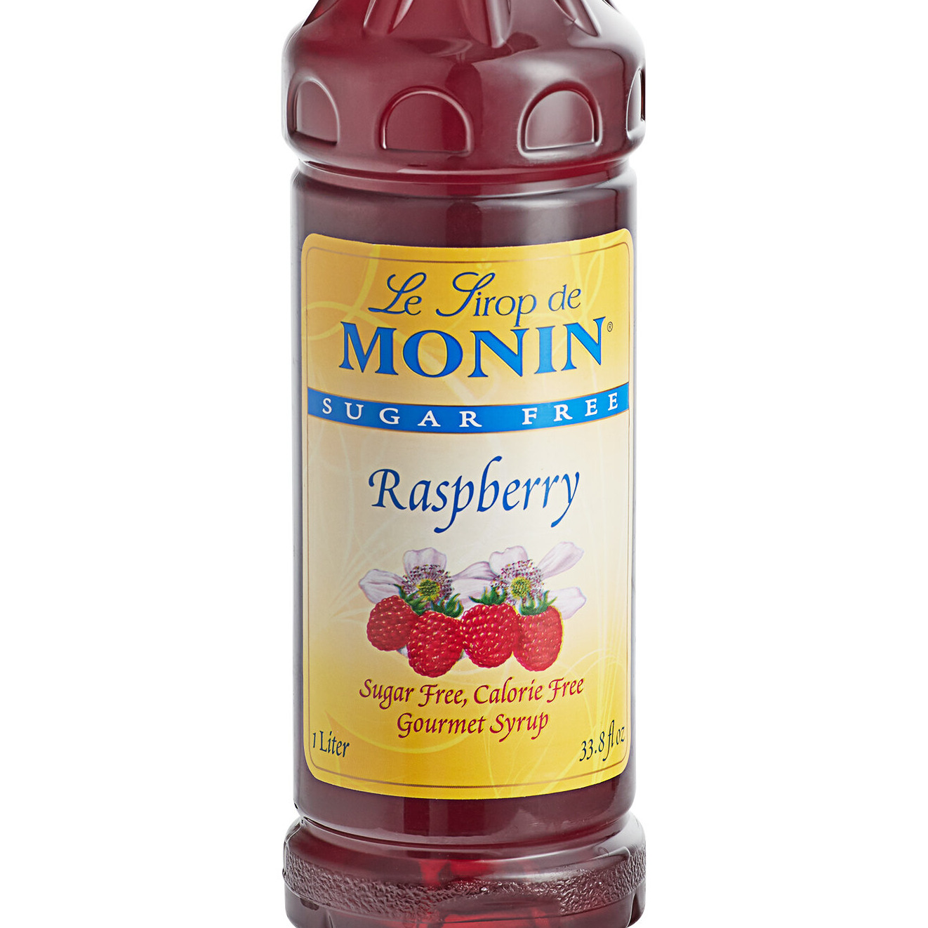 Indulge on all your favorite beverages without the guilt of a high sugar and calorie intake with this Monin 750 mL sugar-free raspberry flavoring syrup.
