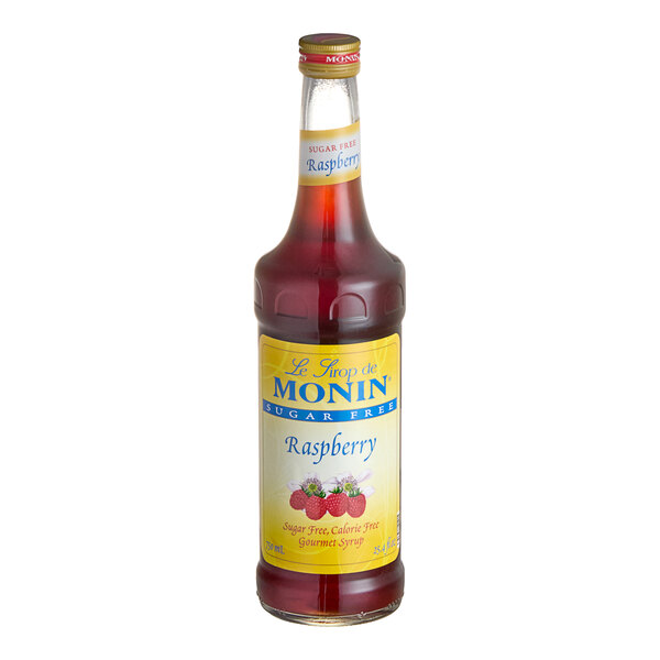 Indulge on all your favorite beverages without the guilt of a high sugar and calorie intake with this Monin 750 mL sugar-free raspberry flavoring syrup.