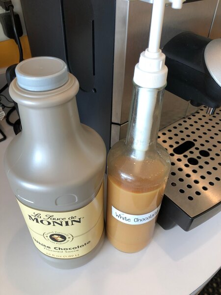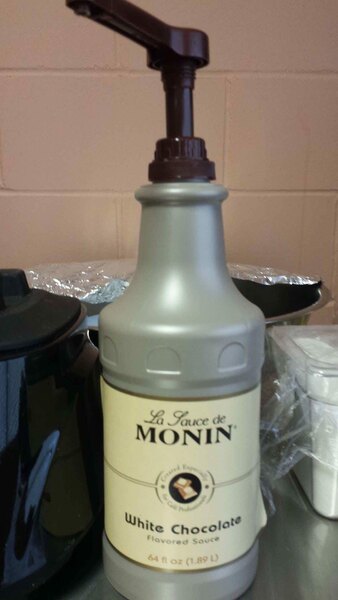 Smooth, white chocolate sauces that is top notch! I also bought the pump to add to the bottle and it dispenses about 1/2-1 tbsp per pump and works awesome for drizzles on our homemade specialtiy deserts! This sauces is so pure and natural that its like consuming a liquid candy bar!