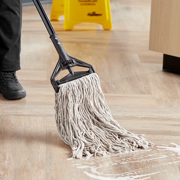 This mop head readily collects dirt and grime to maintain sanitary conditions in your restaurant, hotel, or office. Choose this cotton mop with a classic look for a trustworthy and hassle-free way to keep your facility clean!