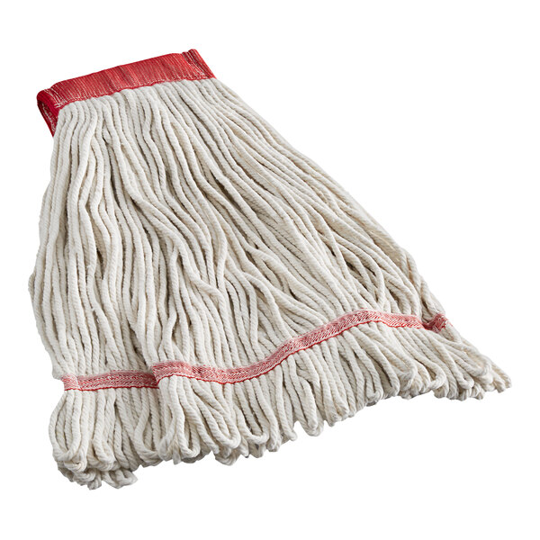 Mopping up spills and messes is a breeze with this Advantage Supplies 16 oz. #24 natural cotton looped end wet mop head with 5" headband!
