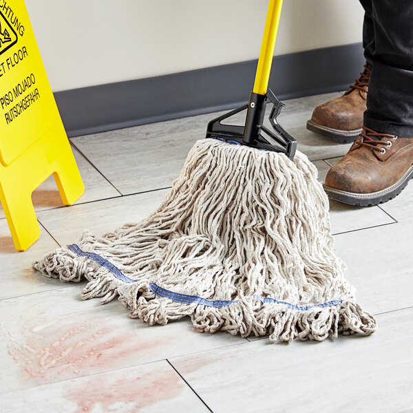 This mop features colored bands, so you can designate its use in your establishment and simplify your cleaning routine. The 1" band is ideal for use with quick release mop handles.