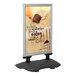 Designed for ease of use, the double-sided silver frame comes equipped with a variety of features to easily change posters. Constructed of anodized aluminum, the 1 5/16" deep frame is 1 3/4" wide, providing a professional look, and easily snaps open with no sharp edges or corners. The clear PET plastic covers resist UV rays and glare and are easy to remove and reattach with the integrated cover hanger. Adhesive tape is also included to secure your signs and can be re-used approximately 100 times, saving you time and money. A rubber gasket inside the frame creates a vacuum seal to help keep the protective cover secured, and a water wicking feature helps keep posters protected against rainy conditions. This sign board is rated IP56 and is suitable for outdoor temperatures between 5 degrees Fahrenheit and 122 degrees Fahrenheit, making it a versatile option for your business.