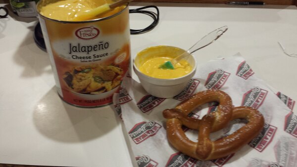 We had a party over the weekend and put this cheese in a crockpot. It was a big hit for the Snyders of Hanover nacho chips (purchased here) and the PretzelHaus pretzels (also purchased here). This jalapeño cheese sauce is excellent, the heat is just enough without being too hot. My grandson is 6 and he even loves it. I would definitely recommend purchasing this cheese. Which reminds me to order another one myself!