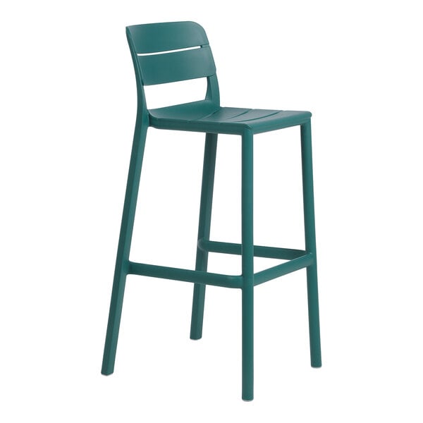 As part of the Cassia collection, this barstool features stylized horizontal slats and an attractive maya green color. Its one-piece construction is light weight and stackable, allowing for easy transportation and storage. Additionally, it has non-slip feet that keep the barstool in place. This barstool seamlessly combines style and functionality to create an inviting outdoor setting for your guests. Whether you're setting up a patio bar or a bustling restaurant terrace, this barstool is the perfect choice for adding a simple, modern touch to your outdoor dining space.