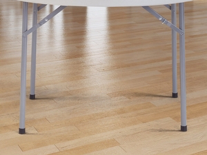 To shield your floors against scratches or damage that could be caused by rambunctious guests, each foot of this folding table is outfitted with a durable rubber cap. These pads also help avoid unfortunate slippage on wet floors.