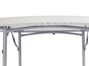 Since its legs bend at multiple joints, this plastic table is easily folded up and laid flat for safekeeping in a closet or on a table cart. Plus, the clips located on its underside were designed to secure its legs in place, allowing for safer storage and effortless transportation.