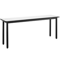 Designed for durability and longevity, this National Public Seating HDT7-1848H 18" x 48" fixed height black frame utility table with high pressure laminate top is designed to meet all of your classroom needs! This table features a high-pressure laminate coated tabletop that resists scratches, high temperatures, and acid stains so you can use this year after year. Its attractive finish looks excellent in educational settings from labs to lecture rooms, all while enduring daily wear and tear. The table's surface is easy to clean for a polished appearance, while its durable black steel frame creates a sleek, professional look.