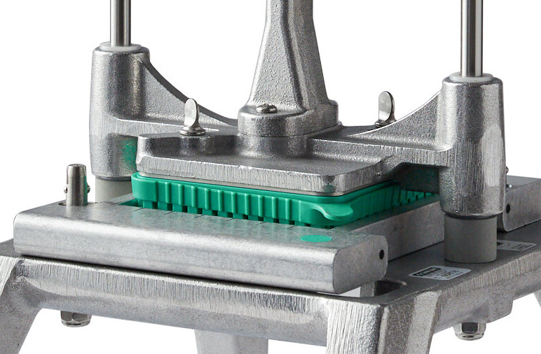 This unit's weighted handle makes cutting an effortless task. Simply load the product and push down on the handle. Your produce will be cut in just one simple stroke!