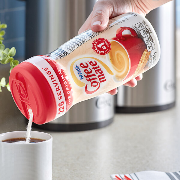 This 15 oz. shaker-style canister is convenient and hygienic, making it easy to sprinkle creamer into your piping hot drinks. The powder creamer sweetens any cup of coffee with an original, rich and deliciously creamy flavor, and it dissolves quickly without diluting or cooling the coffee.