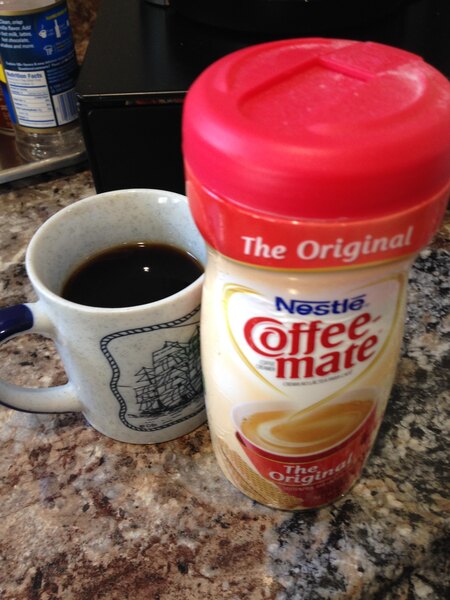 I don't usually love powdered creamer, but the Nestle Coffee-Mate is an exception. It has a great flavor and dissolves easily in coffee. It's great to keep as a back-up that is shelf stable when liquid creamer isn't available.
