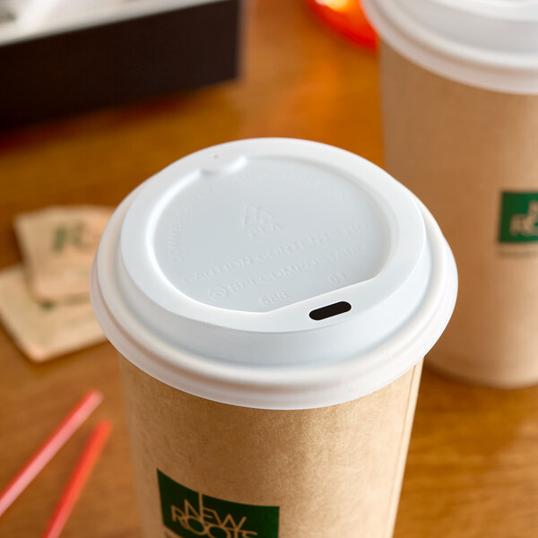 - Item #: 999l1020planrNew Roots Translucent Compostable Paper Hot Cup Lid for 10-24 oz. Standard Cups and 8 oz. Squat Cups - 50/Pack