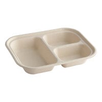 World Centric 29 oz. 3-Compartment Compostable Fiber Container with Leaf Plus - 400/Case