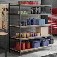6 SizesLavex 24" x 60" Black Z-Beam Particle Board Shelf for 5-Shelf Boltless Shelving Units - 5/Case