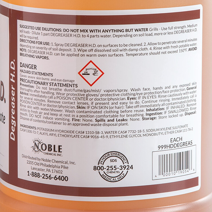 In order to get rid of hard-to-clean grease in your commercial kitchen, look no further than this Noble heavy duty degreaser. It’s perfect for use in restaurants, hotels, hospitals, schools, or any establishment that prepares food. The foamy, semi-viscous degreaser makes quick work of caked-on fats, greases, carbon, and other food particles found in commercial cooking equipment like ovens, ranges, grills, deep fryers, and equipment hoods. Since this product is sold in cases of 4, you'll always have enough to keep your facility clean.