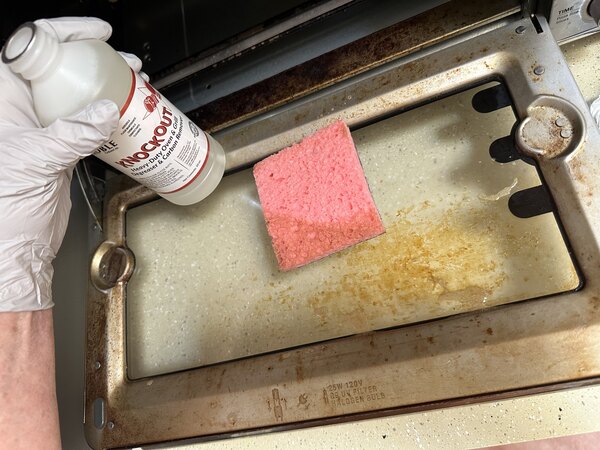 Awesome oven cleaner! My second favorite use is to put some on the flat top when it is still warm or hot and it will quickly eat away at anything baked on to your grill.