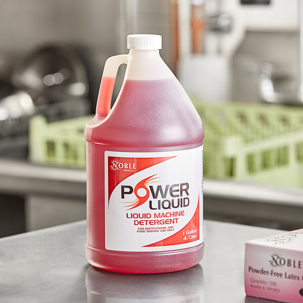 The 1 Gallon/ Noble. Hemical Power Liquid Dish Washing Machine Detergent works great. It cleans well leaving no residue. The price is great too. I would purchase this again.