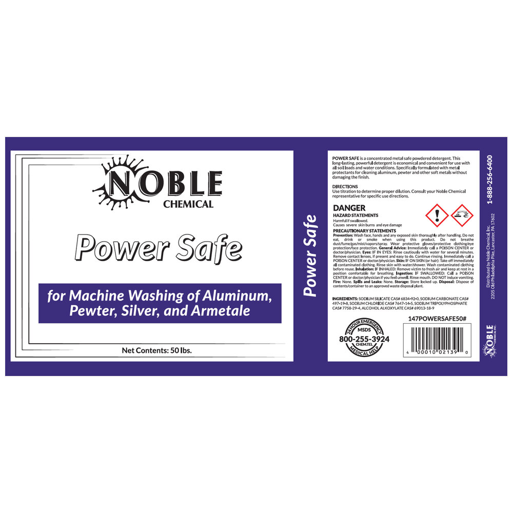 - Item #: 147powersafe50Noble 50 lb. / 800 oz. Power Metal Safe Concentrated Detergent