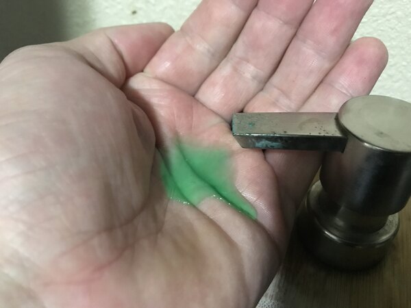 Not a fan of this soap. It gets the job done and is an economical choice because it foams, but it also stains everything blue/green. We have green streaks running down the wall in our bathroom beneath the soap dispenser, and they are hard to wash out.
