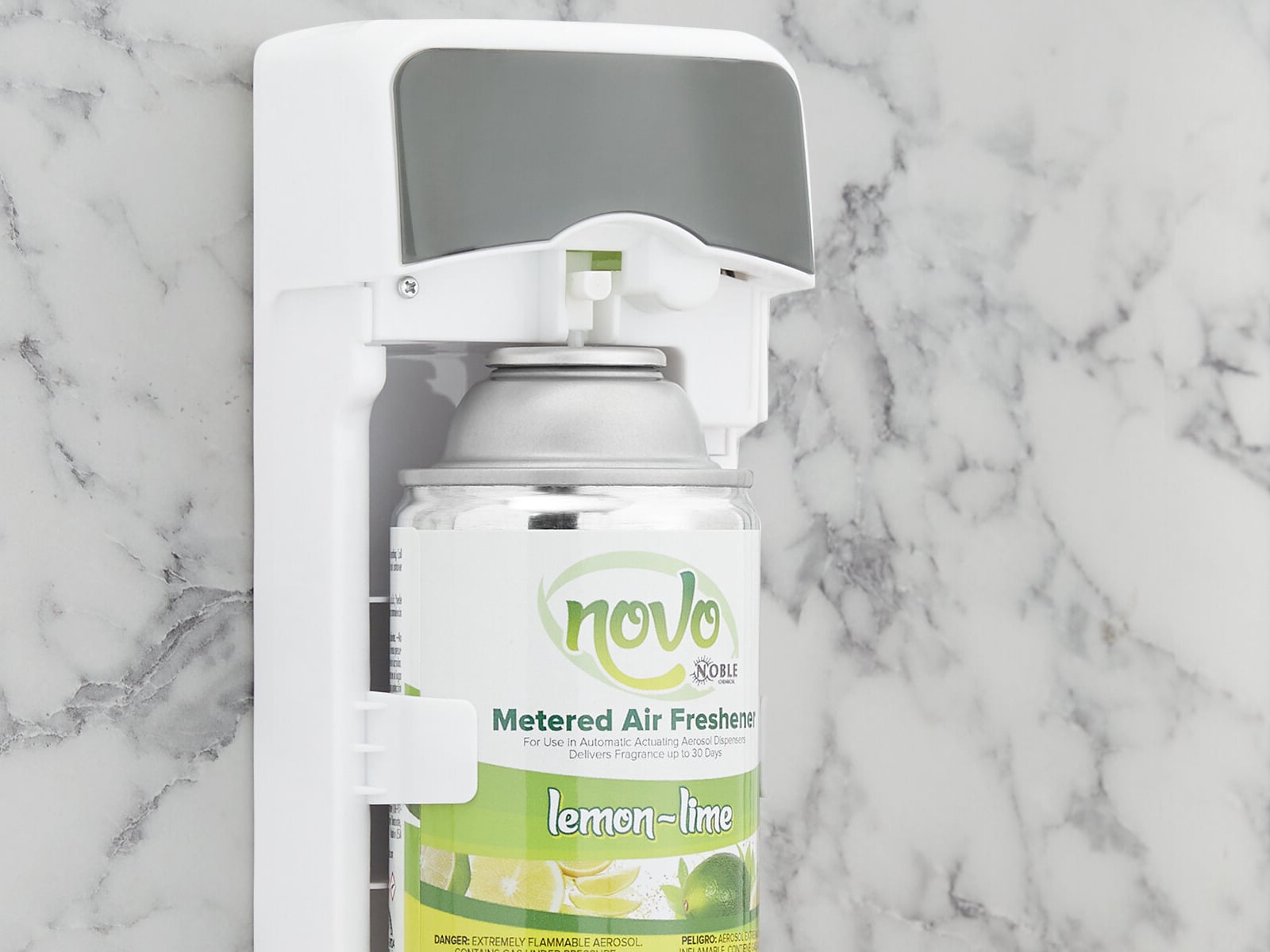 Keep your restrooms smelling fresh with Noble metered air freshener refills! Compatible with many actuating aerosol dispensers, they provide your business with the same great, long-lasting quality as other brands - at an unbeatable price!