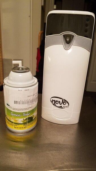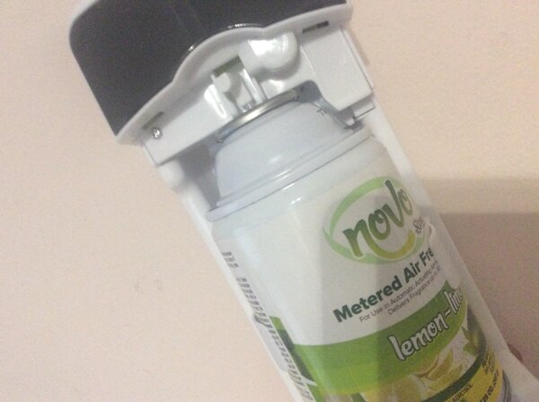 this metered air freshener is great for limen and lime smill is not overpoeering . I put it in all my rooms . leaves such a clean small . thank webstaurant