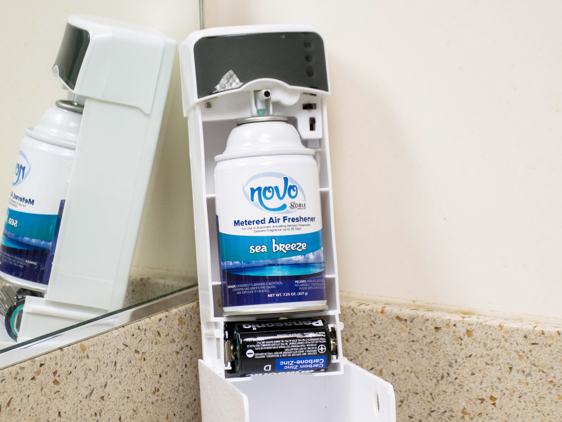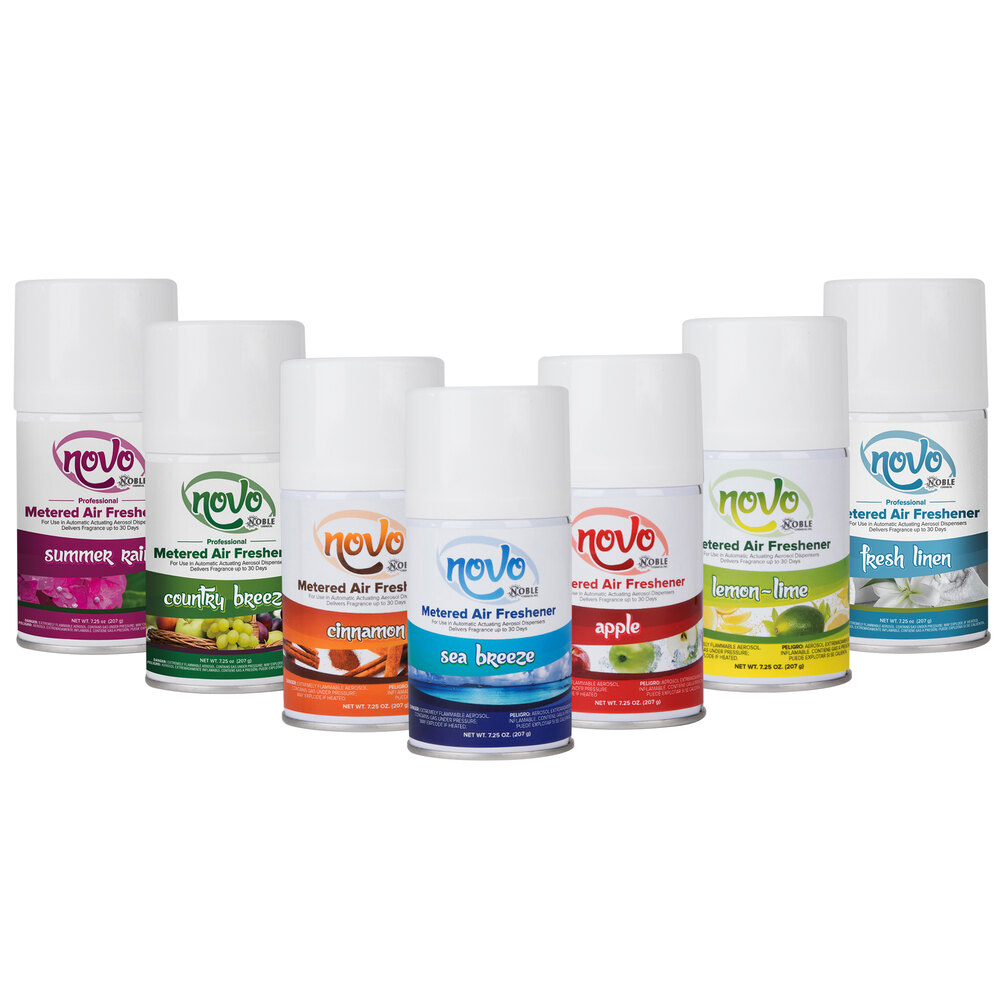 Keep your restrooms smelling fresh with Noble metered air freshener refills! Compatible with many actuating aerosol dispensers, they provide your business with the same great, long-lasting quality as other brands - at an unbeatable price!