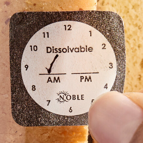 Maintain health code standards and proper food rotation practices with the help of this Noble 1" dissolvable clock label.