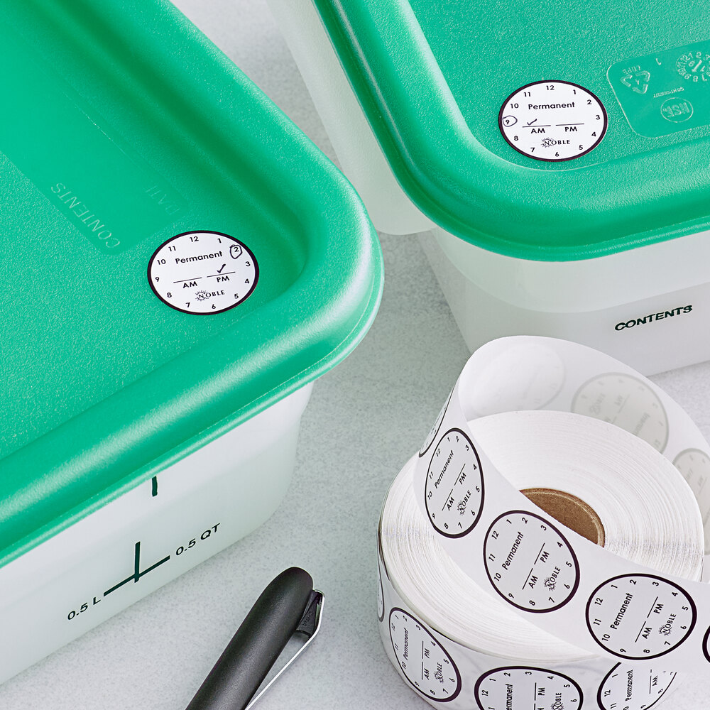 Maintain health code standards and proper food rotation practices with the help of this Noble 1" permanent clock label.
