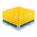Clean, protect, and store your glassware using this Noble Warewashing full-size 16-compartment glass rack with four yellow extenders.