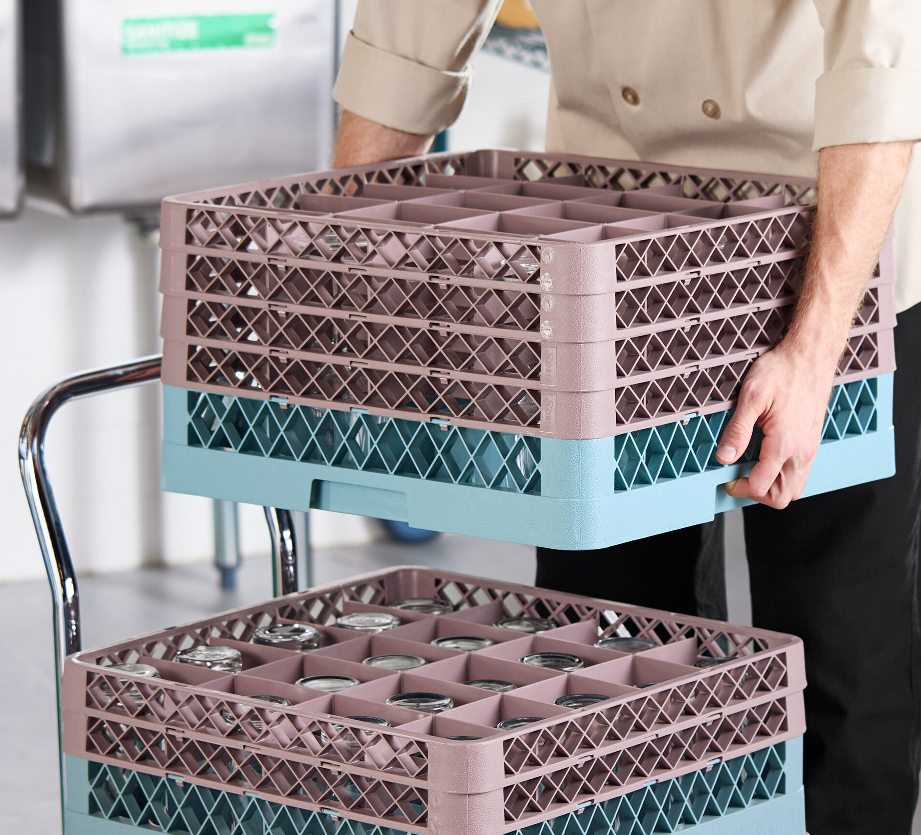 Convenient handles on the sides make it easy to transport full racks of glassware.