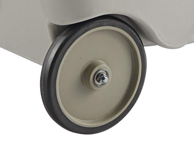 This unit also includes (2) 5" swivel casters and (2) 10" fixed casters as well as 4 non-slip handles for easy and secure maneuvering.